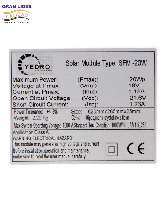 PANEL SOLAR YC-PS20